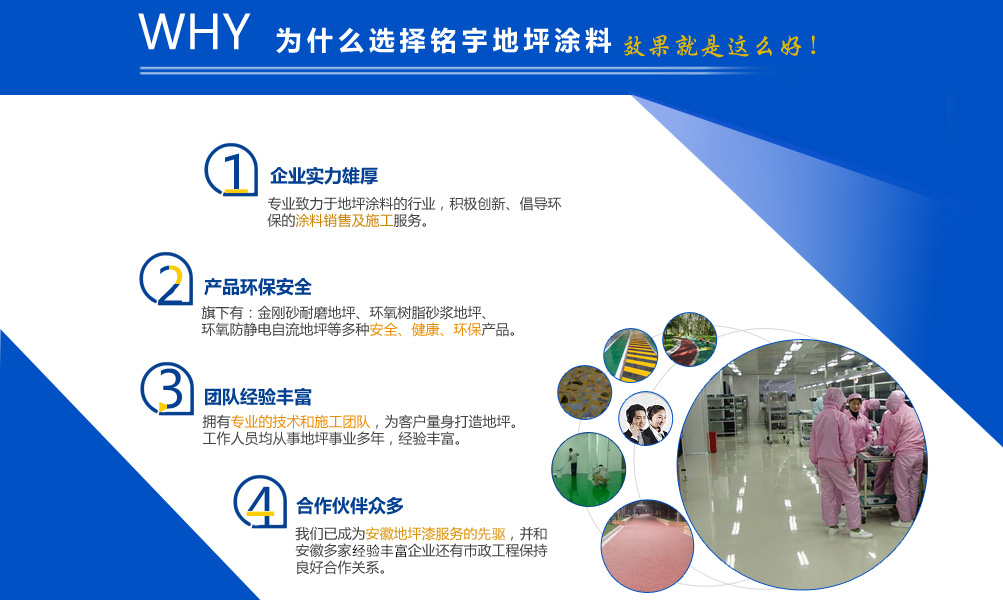 安徽銘宇建材科技有限公司是一家致力于地坪涂料的行業(yè),旗下有金剛砂耐磨地坪,環(huán)氧樹(shù)脂砂漿地坪,環(huán)氧防靜電自流地坪,停車場(chǎng)防滑地坪,混凝土密封固化劑和丙烯酸球場(chǎng),無(wú)震動(dòng)止滑車道、塑膠跑道、工廠地板漆等工程施工服務(wù)。 憑借本身的技術(shù)能力和研發(fā)條件,加上多年對(duì)環(huán)氧地坪和耐磨硬化地坪等各類工業(yè)地坪的涂裝、施工的實(shí)踐經(jīng)驗(yàn)、技術(shù)己處于國(guó)內(nèi)專業(yè)水平,經(jīng)檢測(cè)機(jī)構(gòu)檢驗(yàn)符合相應(yīng)的技術(shù)標(biāo)準(zhǔn)。同時(shí)安徽銘宇建材科技有限公司還組建了經(jīng)驗(yàn)豐富的工程技術(shù)隊(duì)伍以及工程施工隊(duì)伍、簡(jiǎn)歷了完善的售后施工服務(wù)體系,滿足用戶的需要。 安徽銘宇建材科技有限公司是一家積極創(chuàng)新、倡導(dǎo)環(huán)保的涂料銷售及施工服務(wù)的廠家,安徽銘宇建材科技有限...